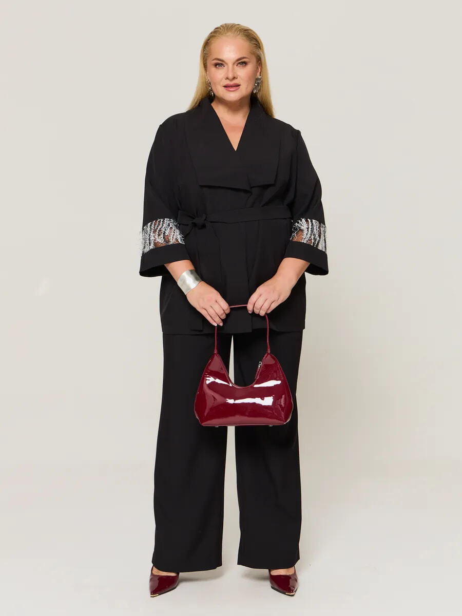 Чёрный костюм — классика, но ограничиваться только им не стоит. Женщины 48–68 размера прекрасно выглядят в: