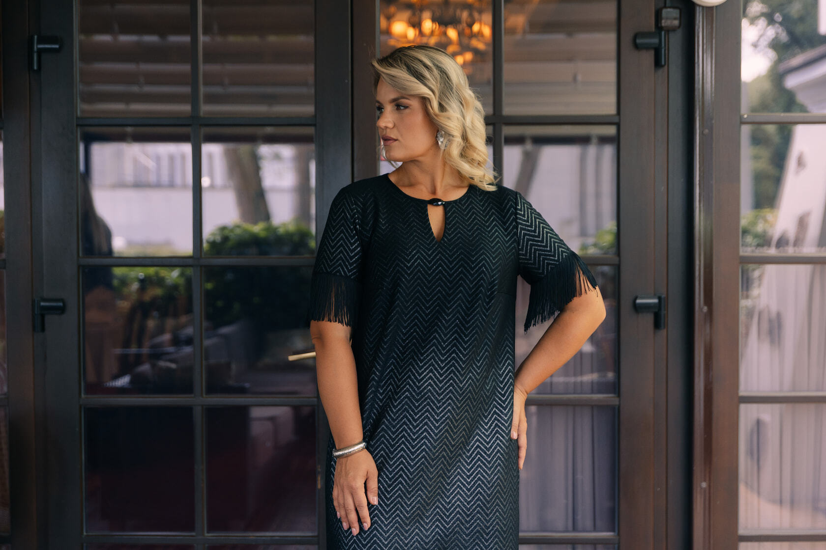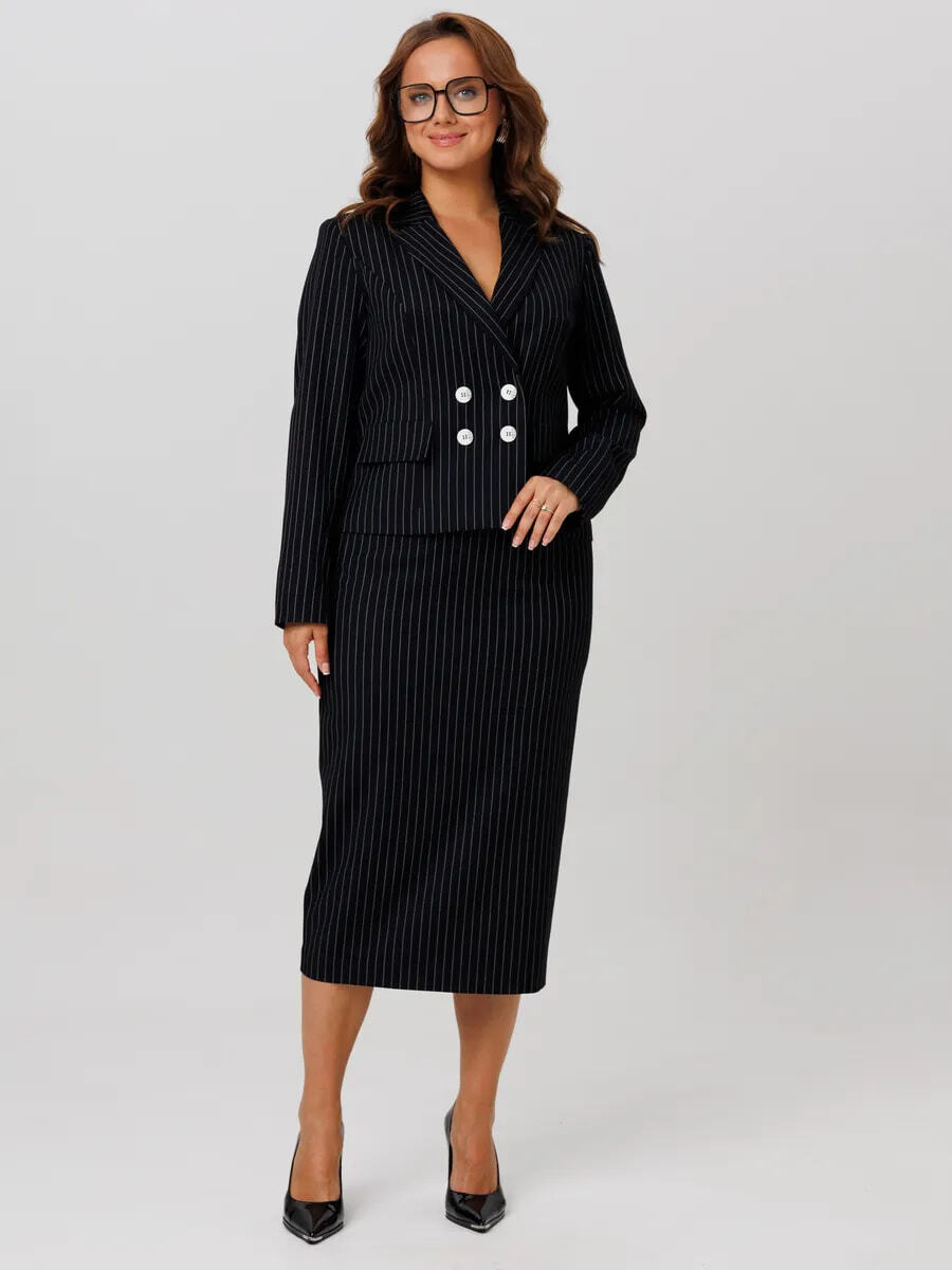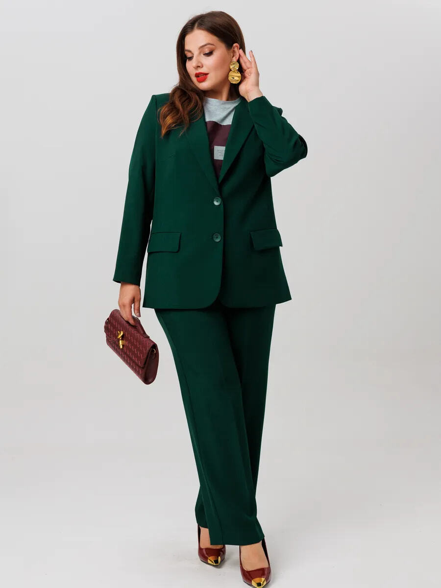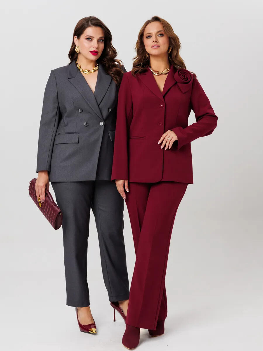Для женщин с формами лучше всего работают костюмы с чёткой линией плеча и мягким прилеганием по талии.